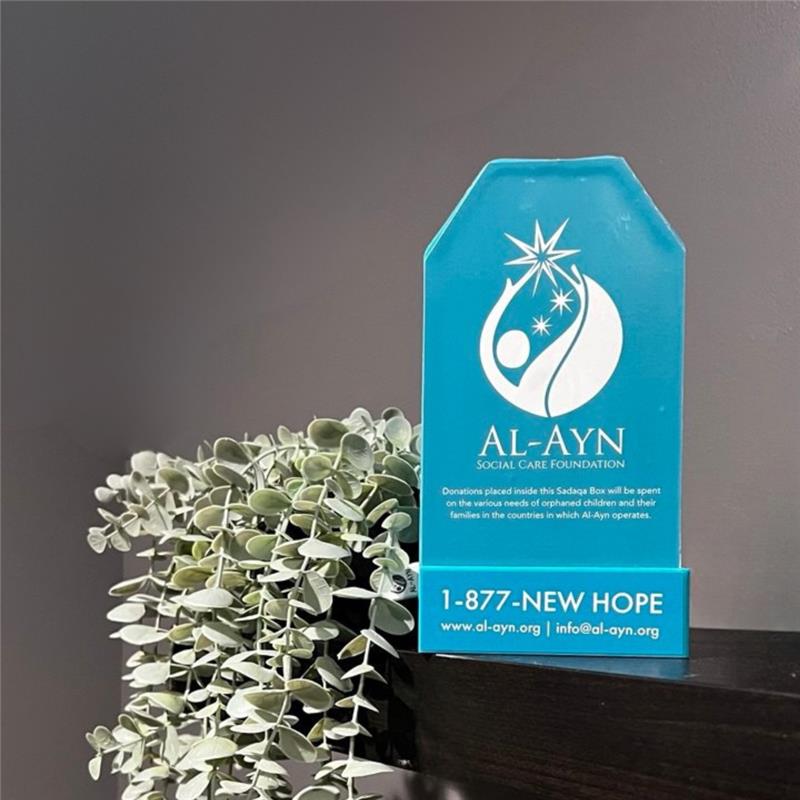 To return a Sadaqa Box or request a Sadaqa Box for your home or business, simply fill in the form below and a new one will be delivered to your door within 10 business days. If you have any questions or requests, please feel free to call us on: 1-877-NEW-HOPE or email us at: info@al-ayn.org